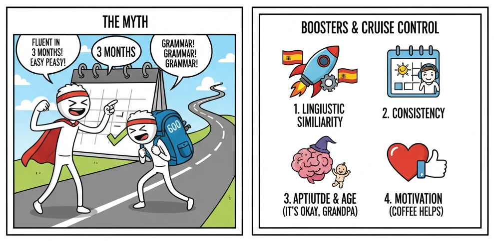 We’ve all heard the myth: “You can be fluent in three months!” While that’s great for marketing, the truth is a little more complex. Learning a language is a marathon, not a sprint—but science gives us clear benchmarks to help set realistic expectations.